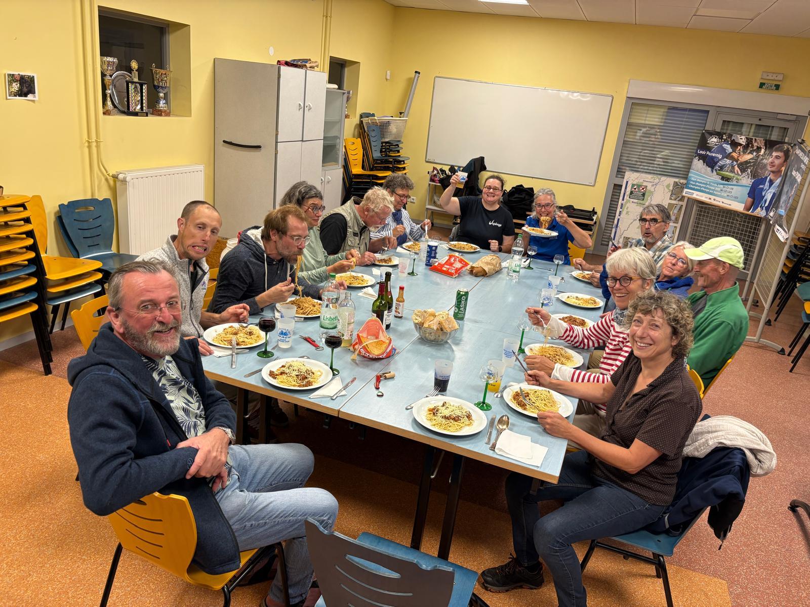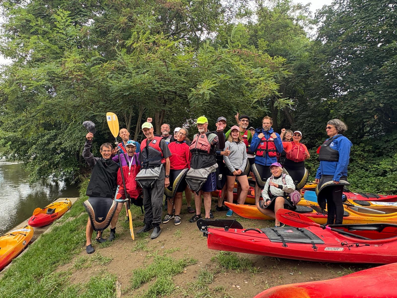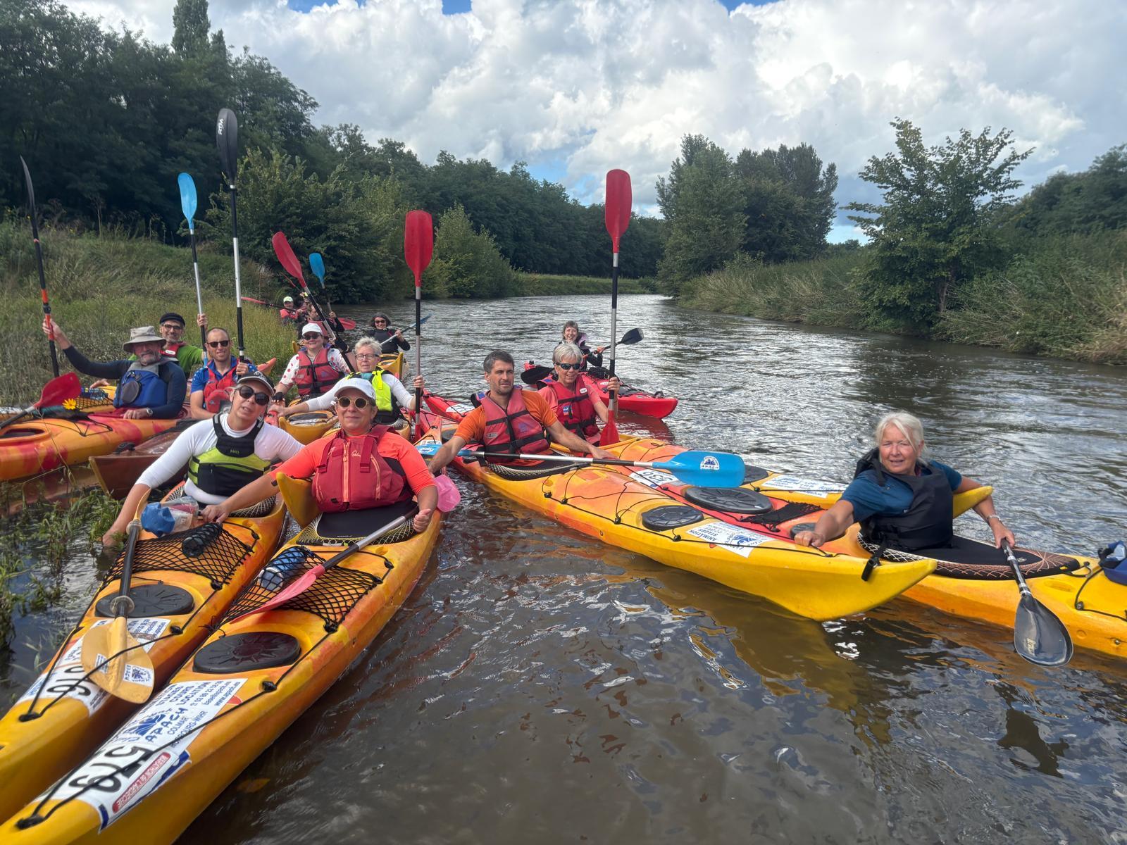 Die Strecke war anspruchsvoll und voller Überraschungen, mit kleinen Stromschnellen, einigen Schwellen und am Ende einem Baumstamm, den es mit kräftiger Unterstützung der französischen Teilnehmenden zu überwinden galt. 17 Kilometer voller Adrenalin, die den Appetit auf den Aperitif und das reichhaltige Abendessen, das für die Teilnehmenden zubereitet wurde, weckten. Der Empfang und die Gespräche waren sehr herzlich und legten den Grundstein für zukünftige gemeinsame Fahrten.