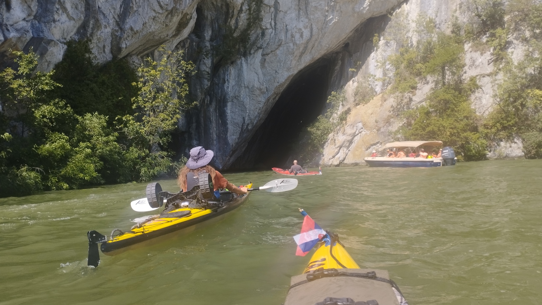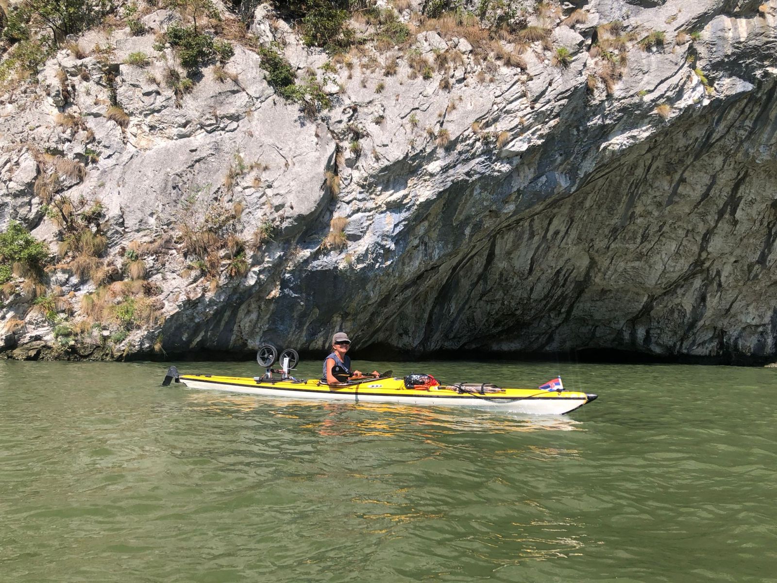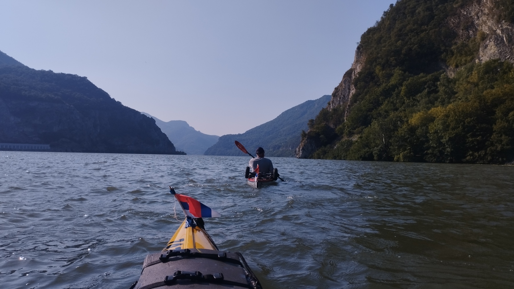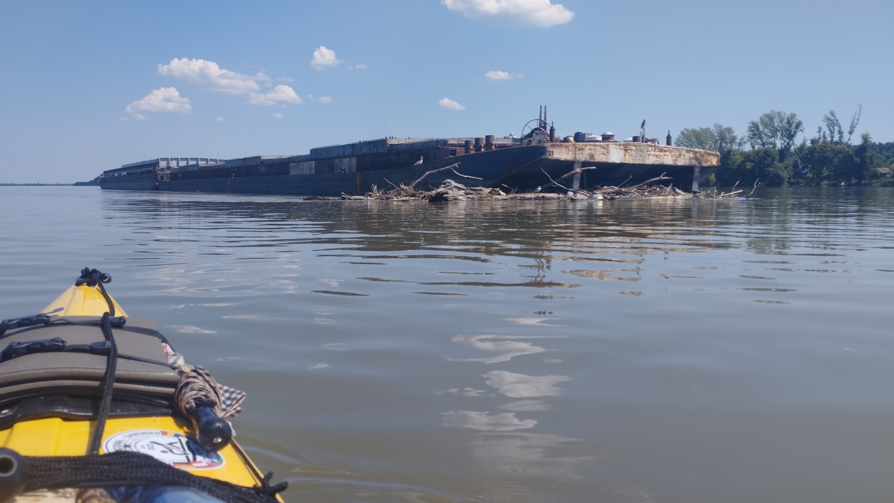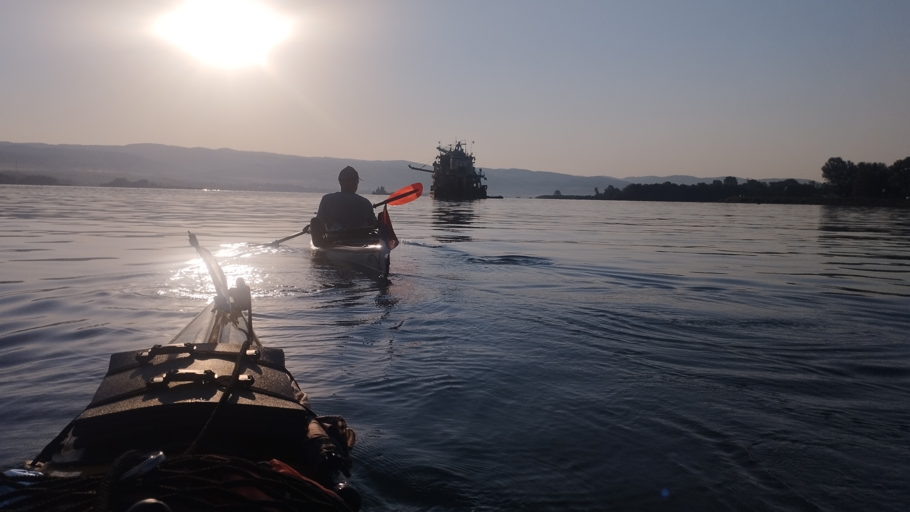 Besondere Schwierigkeiten auf der Donau bestanden anfangs mit einem enormen Hochwasser mit viel Treibholz, dann starken Winden aus verschieden Richtungen und entsprechend mit ausgeprägten Wellenbildungen, die oft von uns Paddlern volle Aufmerksamkeit forderten. Riesige im Schubverbund fahrende Frachter, Kreuzfahrtschiffe und monströse Wracks gehörten oftmals auch zu unseren Begegnungen. Häufiger prägten sehr hohe Temperaturen, Stürme mit oder ohne Gewitter das Wetter auf dem Balkan. Dieses Jahr sind wir aber glimplich davongekommen. Nur hatte ich zweimal Wasserpfützen nach Gewitter und starkem Regen in meinem Zelt und einmal in einer Nacht die Befürchtung von Stangenbruch und zerissenem Zeltstoff. Was sich aber im Morgenlicht als nicht so schlimm erwies.