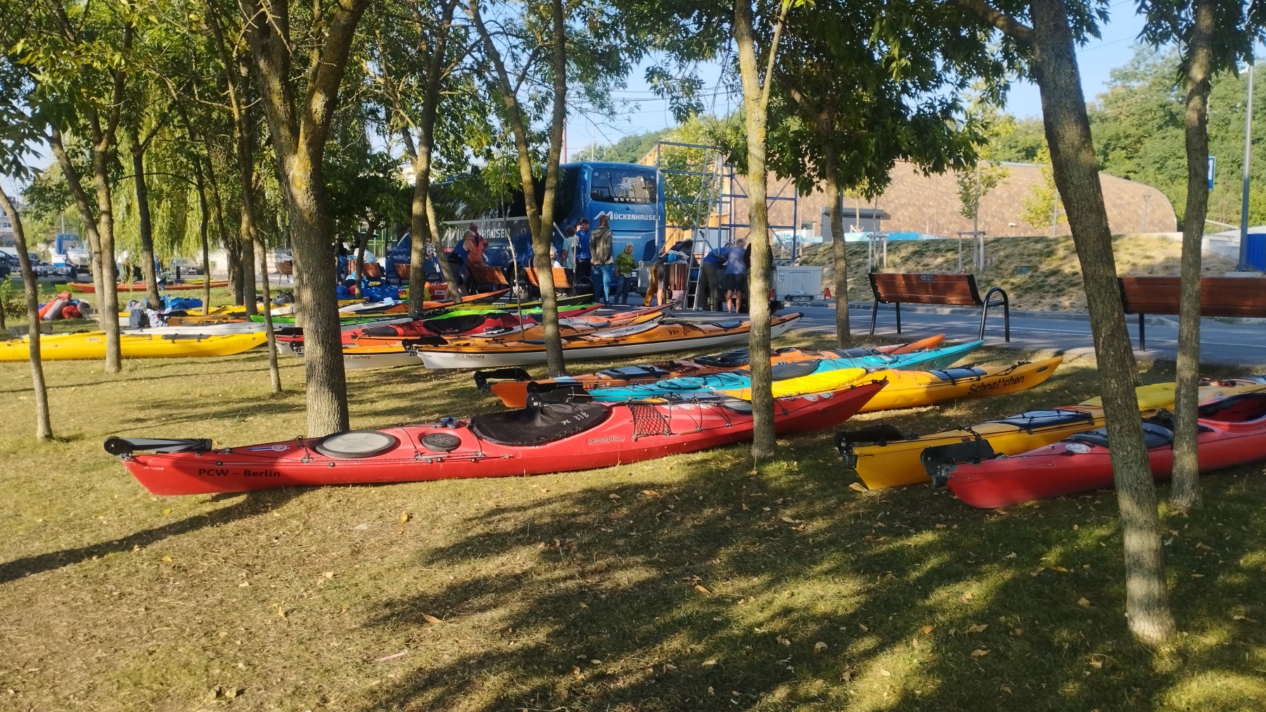 Jeden Morgen hieß es wieder alles zusammenpacken, in die Kajaks verstauen und möglichst zeitig aufs Wasser kommen, manche schon vor Sonnenaufgang „Early Birds“, um vor der Mittagshitze oder aufkommenden starken Winden einen Großteil der Strecke absolviert zu haben. Es gab keinen gemeinsamen Start in der Gruppe. Manche paddelten solo und manche fanden sich in kleineren wechselnden Gruppen zusammen. Abends trafen sich alle wieder am Tagesziel oder hatten dem Fahrtenleiter Bescheid zu geben, wenn man wild biwakieren wollte. Vielfach zelteten wir am Rande eines Fußballplatzes, in Parkanlagen oder sogar innerhalb alter Festungsanlagen.